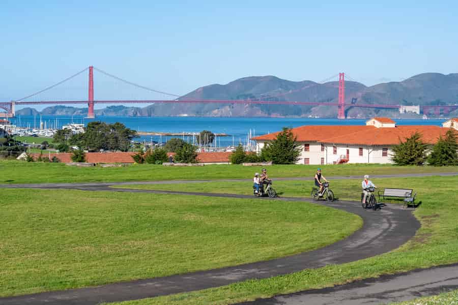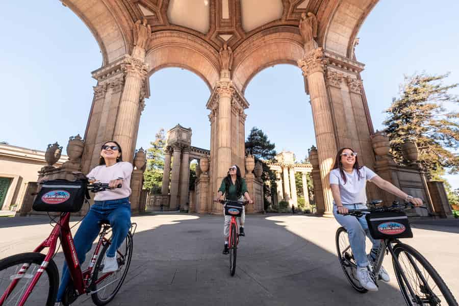 Bike the bridge. The most popular route will take you along San Francisco’s stunning waterfront across the Golden Gate Bridge and down to the picturesque bayside towns of Sausalito and Tiburon. You'll have the option to return on the ferry, too.