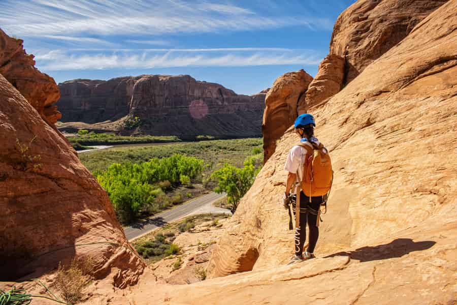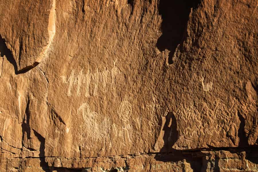 Embark on a thrilling 4-5 hour canyoneering adventure through the captivating Bow and Arrow Canyon known for it's multiple rappels, petroglyph panels, dinosaur tracks, and an impressive arch!